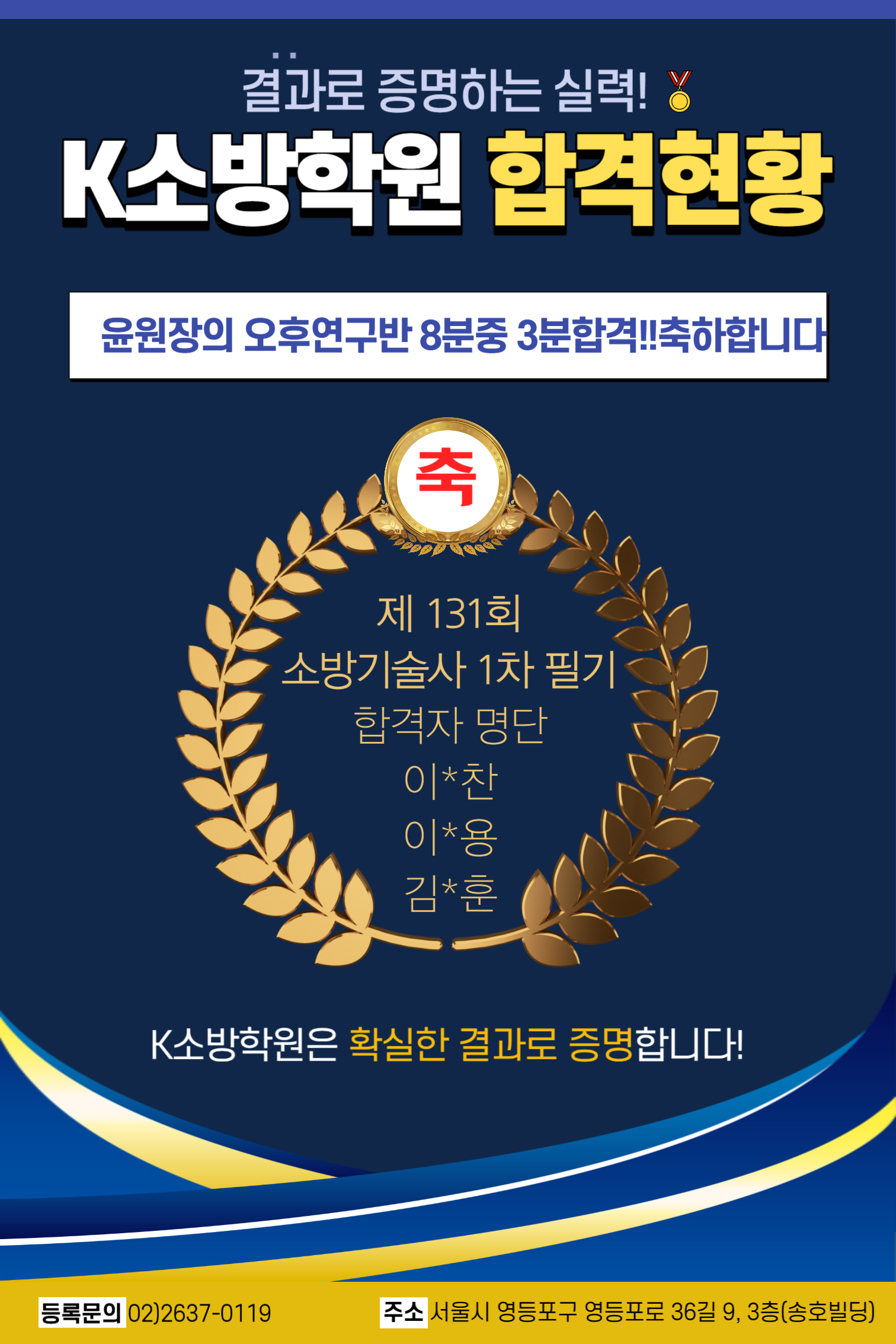 131회 1차 합격 축하드립니다(윤재웅원장의 오후연구반 8분중 3분합격)
